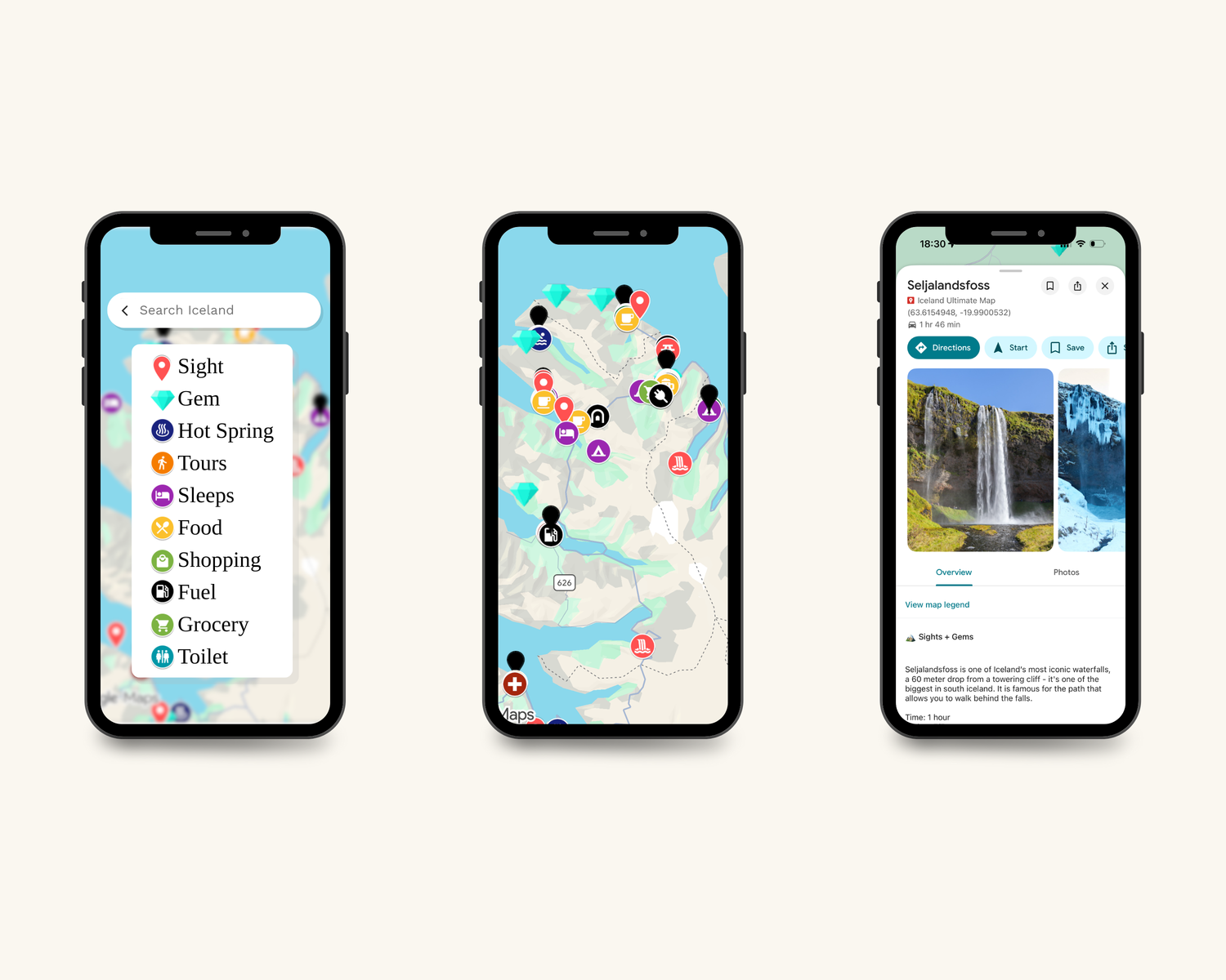 But my Iceland map will pin a hot spring and have everything you need to know about it in the description. From opening hours to admission fees, to whether there’s food onsite, and whether there are changing rooms.
