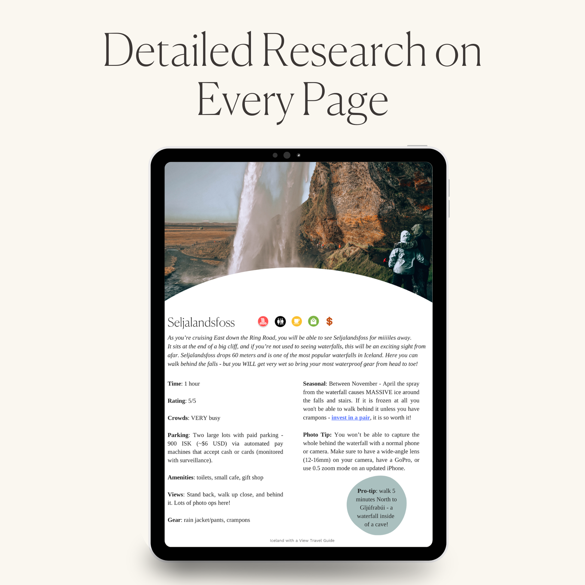 This isn’t just a map to gather inspiration. I’ve done ALL the heavy lifting for you. My guidebook + map makes it SO convenient while you are driving around Iceland because you have everything you need at your fingertips.